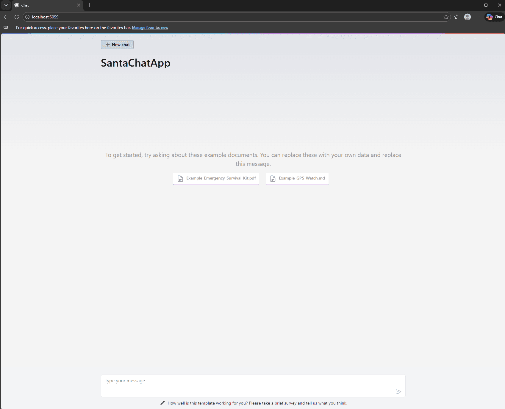 dotnet run --project SantaChatApp.csprojThis will give Santa a friendly chat interface for interacting with LLMs and local documents that have been ingested by the RAG system that are included in the template project. In this template project, local documents are ingested into a vector storage database and then retrieved to add additional context to the user’s prompts.